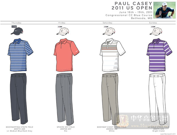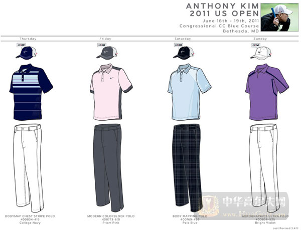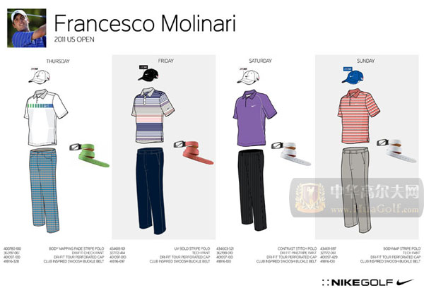 以下是NIKE Golf在2011美国公开赛上的球星服装设计。没有伍兹,没人敢穿红色:)