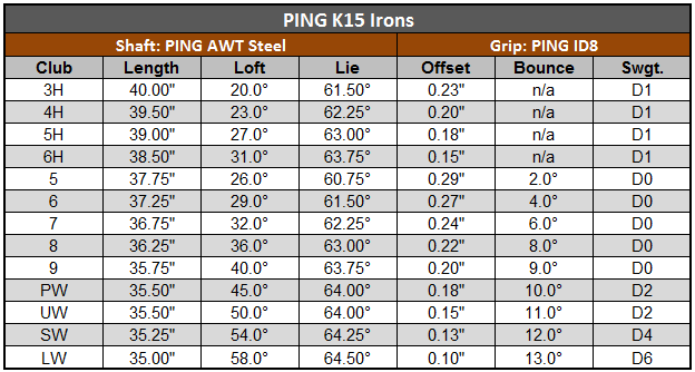 实际使用中,PING允许你任意搭配他们的产品,6号以下都换成K15铁木也没问题,如果你更喜欢传统的五号铁也可以放进来,挖起杆也没问题,总之除了推杆任何杆面倾角小于58度的球杆都能由K15铁杆组替换。PING这么做不是为了展示他们产品组合的多样性,而是在于为使用者量身打造一套真正适合他们的球杆。