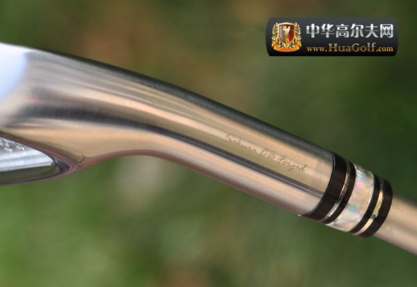 首先这套名字叫做【 Sakura CB】樱花限量版,全球200套。杆头的个头属于中等偏大的,底面较宽,放在地面上是比较有信心的类型。特别提醒各位对品牌LOGO不熟悉的朋友,那个标不是玛莎拉蒂,是乔治精神啦。关于这个LOGO,Jason个人认为它代表的意义是球杆击球飞出去的角度,不是左边,不是右边,而是跟你杆面平行的正中央,是不是很给力??