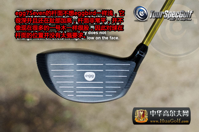 尽管egg Seven是为低差点选手设计的,但它并没有大部分职业选手喜好的小型杆头,而是采用了460的大头。在瞄准时,由于杆面角度很小所以看起来会像是平的意义,几乎看不到杆面。