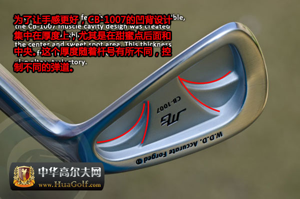 Miura的铁杆最注重的就是手感。CB1006的手感已经非常好了,这款的能有多大改进呢?首先这款杆是采用软 钢S25C锻造,杆背部采用了小凹槽,并且在凹槽里面还加入了不同厚度的设计来进行重量分配。