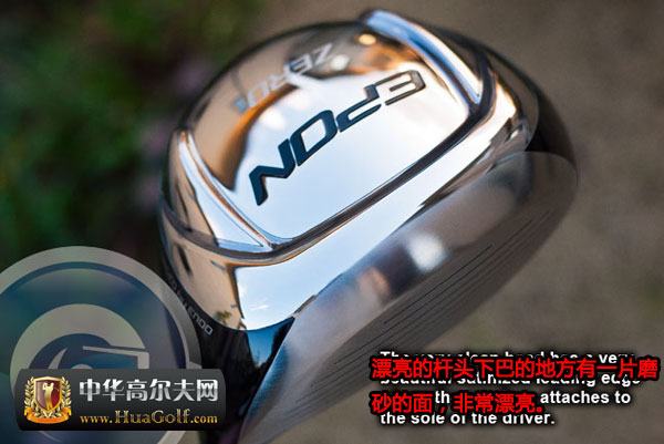 杆头的底部有一片很漂亮的磨砂效果的面,很独特的设计。如果外观是选择一号木的第一基准,这款一号木绝对在领先榜上遥遥领先龙马Ryoma和其他所有的一号木。现在很多的一号木看起来都很高科技,但有时候简单的才是最美的。我对他唯一的担心就是镜面抛光的底面,会不会不经磨呢,大家买一根回来打两个月就知道了。我只希望EPON能做一根我这个差点也能打动的一号木。