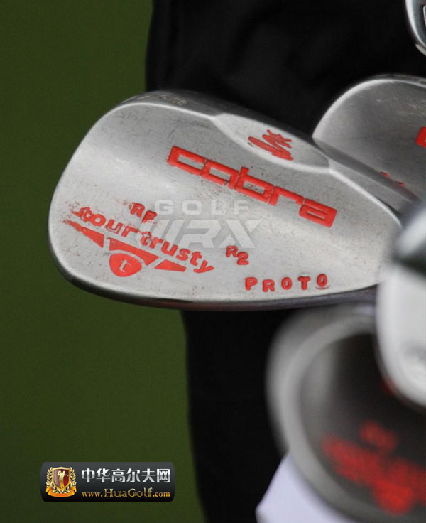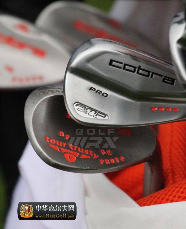 现在他打的一号木是Cobra AMP Cell Pro,以及AMP Cell Hybrid,Cobra AMP Cell Pro Forged铁杆(4-9)以及3支定制的Trusty Rusty挖起杆(47度,51度以及55度)。