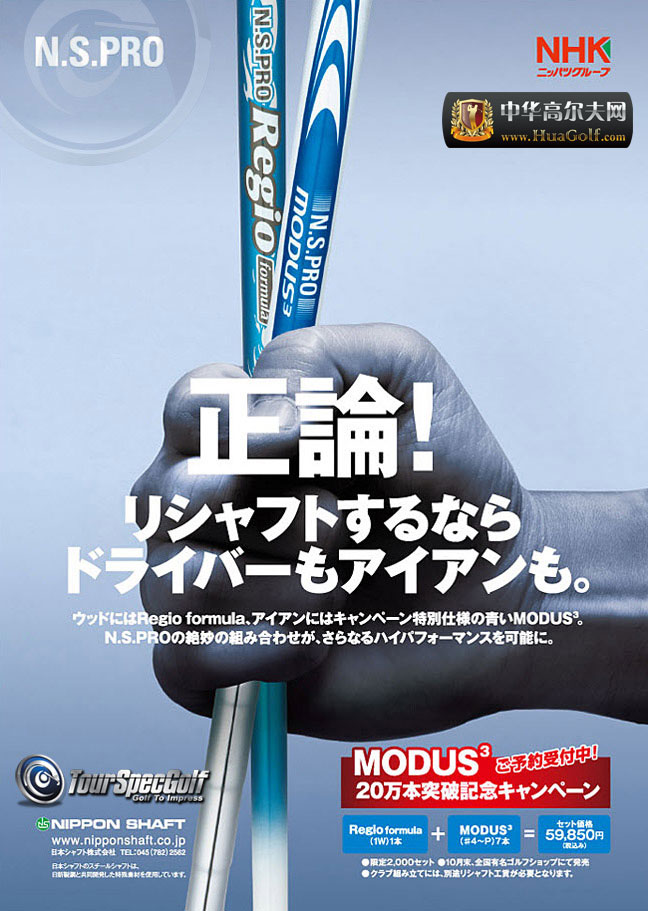 Nippon Shaft发布了限量版蓝色的Modus3,这一组包括一根80t的NS Pro Regio Formula 一号木杆身和一组蓝色的Modus 3铁杆杆身4-P共7支。