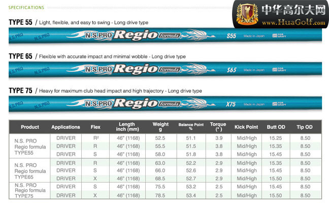 N.S.Pro专利的尾端加强技术让旋转减少,弹道更好。 Regio formula比起N.S.Pro Regio更轻,但是旋转更少,弹道更高。杆身的折点在中部,尾部非常硬,整体扭矩非常低。整体杆身的弹性非常好,这都是为了击球更远。