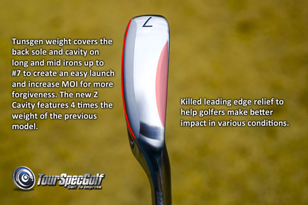 全新的2013 Z凹背铁杆是一款比较大头的铁杆,科技含量比较高,主要都用于提高易打性和表现能力。杆头后部的凹槽比较大,重量分配到了杆头的两边,增加了杆头的MOI(转动惯量),同时让非甜蜜点击球也能有比较远的距离。Yamaha使用ES230弹簧钢来打造杆面,让距离更远,手感更好。弹簧钢比钛金属更耐久,并且可以比不锈钢更薄,让能量传递更完整。
