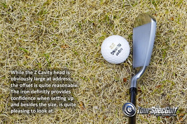 尽管Z凹背绝对是个比较大头的铁杆,但是在瞄球的时候,它看起来还没那么糟,对于这个大小的铁杆来说杆面后移也不算大,尤其是很多高差点铁杆都有个像鹅颈一样夸张的杆脖子,瞄球的时候我感到信心满满,Yamaha这款铁杆的设计核心就是给人更强的信心。