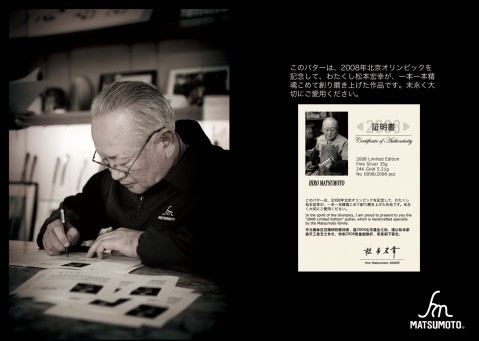 2008年 松本宏幸倾其毕生精力着力打造的Matsumoto 2008 限量版,它融汇了松本宏幸的毕生技艺。打破了贵重金属不可制作常规使用的推杆定律,24K纯金作为嵌入物取代了常规的特殊金属,这款推杆完成了一生中技术巅峰的挑战,成就了家族的巅峰之作。