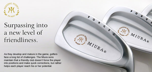 Passing Point代表着汇合点或者中间点。你身边的熟人会在某一个点变为朋友,你学一样东西会从完全不懂到一个认真的学徒,从一个随意的高尔夫球手到一个竞赛的选手,这中间都会有一个点。你的球杆也会有一个中间点,一个全新的级别,他们从14根工具变为14个朋友,逐渐适应你的挥杆。在制造Passing Point的时候,Miura的他的两个儿子就在问自己,什么是“友善”的球杆?根据这一哲学,他们创造了Passing Point这个系列。