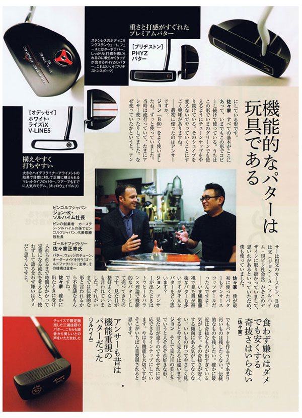 今年Gold’s Factory的技师都很忙。去年Gold’s Factory在日本的很多媒体杂志上都有大量曝光(图片为Gold’s Factory的社长与PING的现任总裁坐在一起接受采访,讨论推杆的发展),今年更多的选手慕名而来,看看大师的手艺,如何化神奇为神迹。