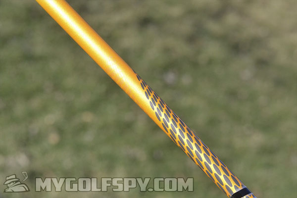 我认为杆身上的花纹和图案只有在靠近杆头的部分才会影响你的注意力,因此这款杆身在杆头下面15寸的地方都是纯黄色没有任何其他干扰,不会影响你的挥杆。
