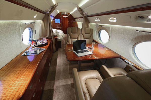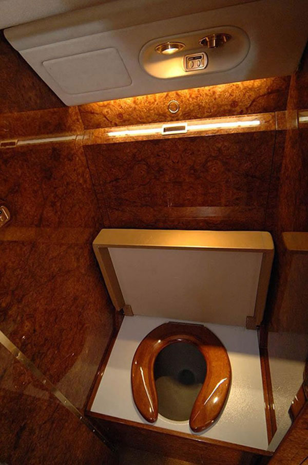 因此他确实早就已经买了一架飞机Gulfstream V(湾流5),零售价接近4千万美金。不知道大家觉得如何,反正我觉得这玩意是够豪华的了。饿了有饭吃,渴了有酒喝,累了可以躺床上,憋了可以坐木质马桶。