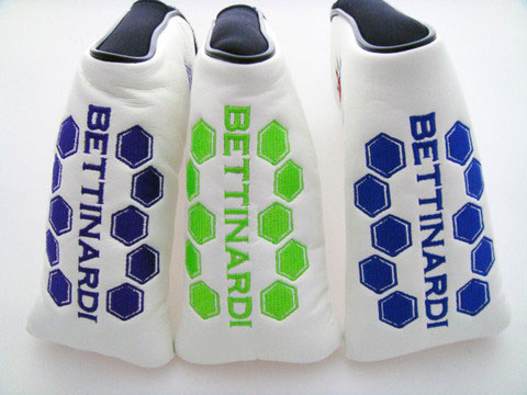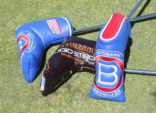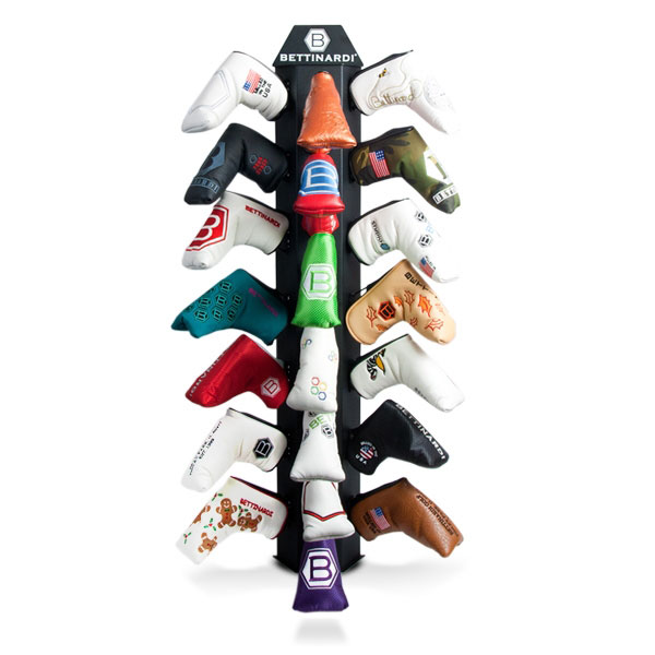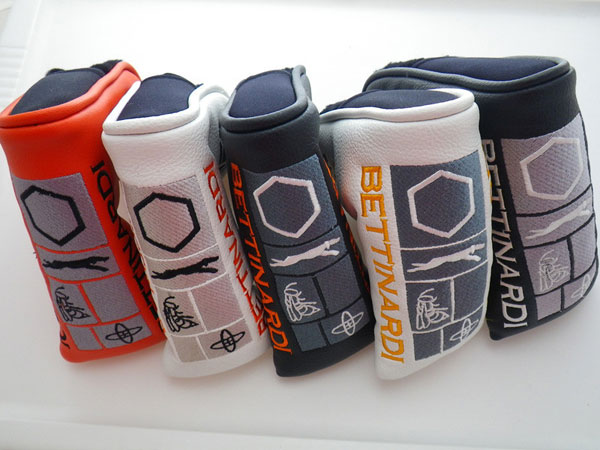 Bettinardi的推杆各式各样,常常为选手推出限量的特别版,而它的杆套也随着各种节日和特殊活动而生产。独立日会有独立日杆套,鬼节会有鬼节杆套,圣诞节会有圣诞节杆套……总之你看职业选手的Bettinardi推杆很少会有重复的杆套。在美国也有发烧友专门收集Bettinardi家的杆套,一收就是整整一柜子,非常华丽。