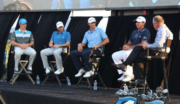 在盛大的发布会上,Taylormade的四个看家大明星来讲述了一下Taylormade的上一款铁杆Rocketblades。他们分别是:Sergio Garcia,Dustin Johnson,Jason Day和Justin Rose。