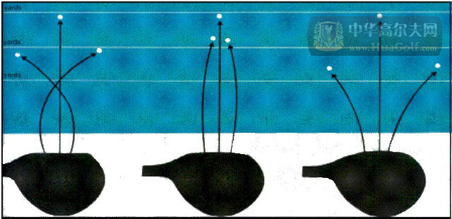对于比较容易打出slice的选手,我建议你把杆面扣一些,然后用杆趾部瞄球。这样一方面会减少杆面弧度的影响,同时还比较容易抵消你的右曲弹道,球会更容易直。