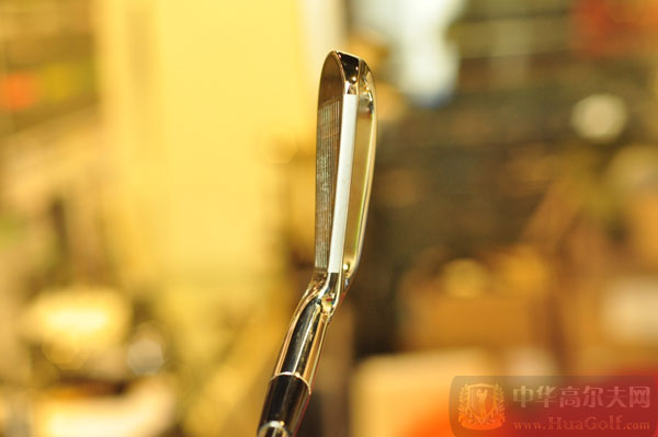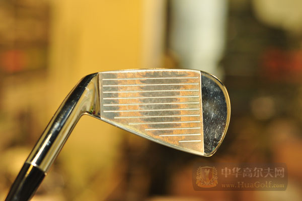 除去这个杆面之外,杆头到处都是鲜亮之处,线条也非常柔和,杆面背部的磨砂也是一种温柔的反光,和杆面的凶狠形成鲜明对比。我想这整套铁杆就代表了这一种双重理念的对撞,貌似其貌不扬的低调的小品牌铁杆,谁知是出自M.Sasaya大师之手,若不是拿起来仔细端详真是看不出这款铁杆和普通的Scratch之类有何区别。