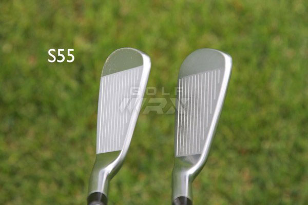 经过测试我们发现S55的长铁杆可以比S56要远3-5码,对于在5杆洞可以两杆攻的选手来说这是非常重要的,在打比较长的Par3的时候也是。