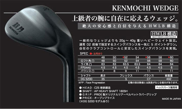 所有的Kenmochi釰持的挖起杆都是由釰持教夫先生亲自研磨,有非常小的杆面后移,水滴形的杆头,M型的杆底面并且杆趾和杆根部曲线很圆滑。这种挖起杆非常容易在任何球位操作,打开杆面也不会觉得有任何不舒服。