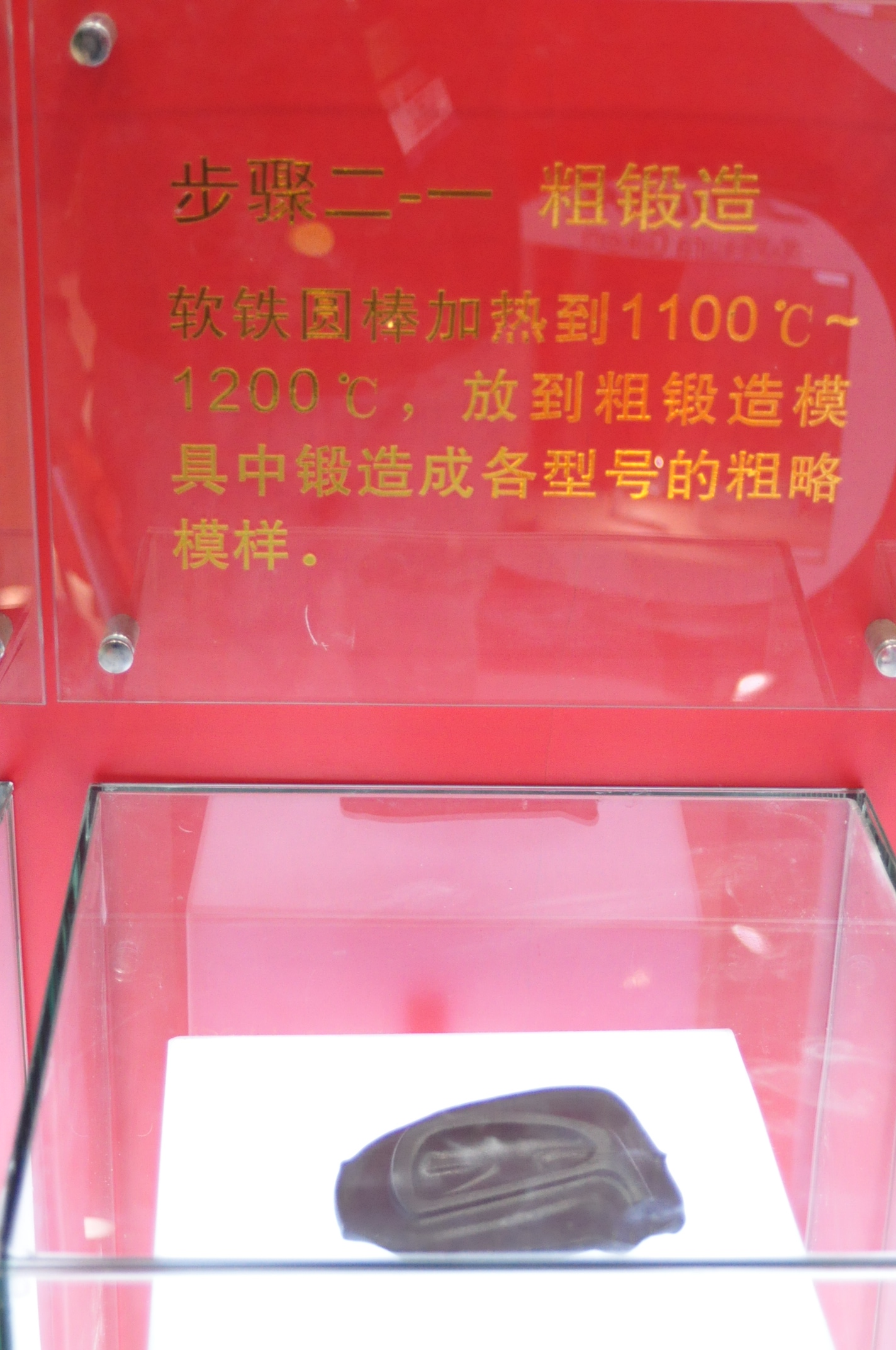 软铁圆棒加热到1100度~1200度,放到粗锻造模具中锻造成各型号的粗略模样。