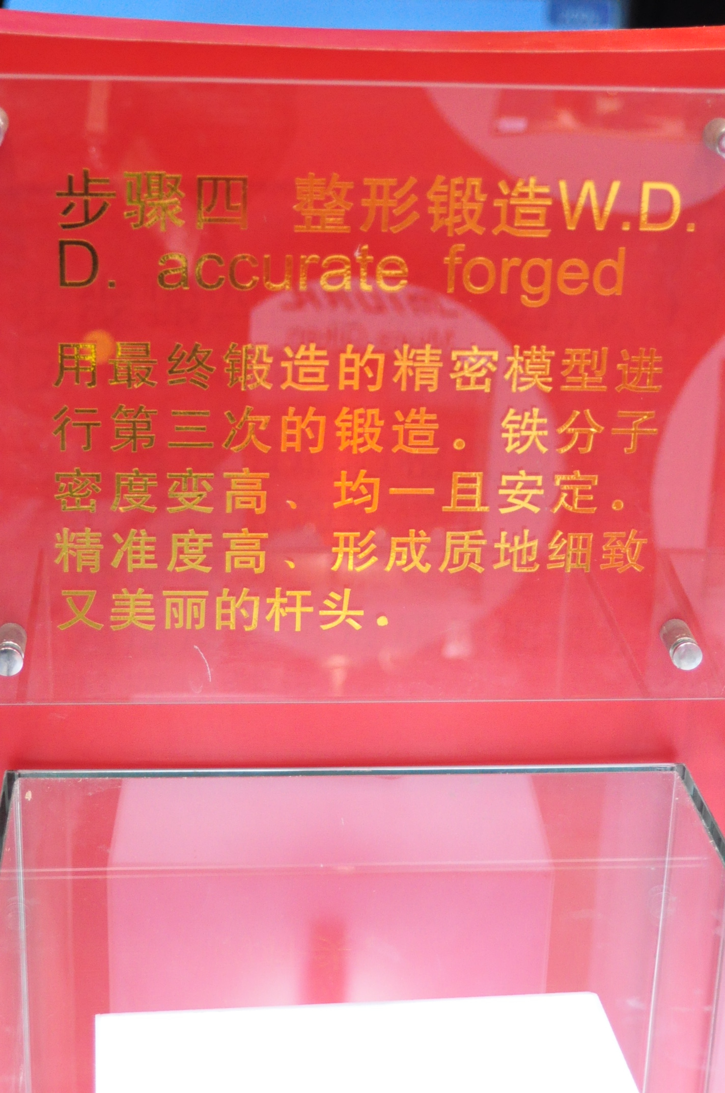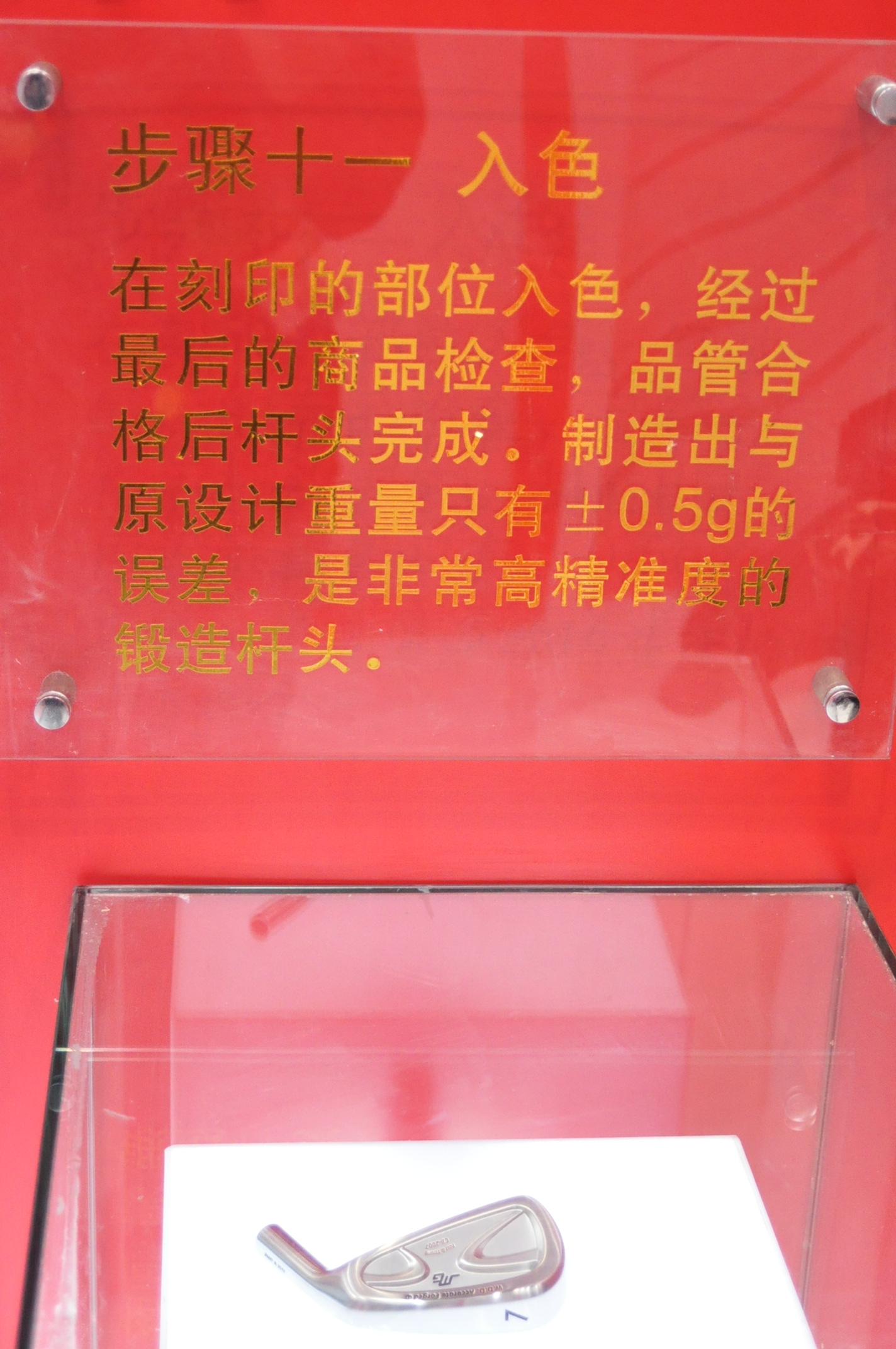 这次在北京的高尔夫展会上刚好看到了Miura的展位,上面有个很有意思的东西——Miura的制作流程,刚好每个流程都有一个杆头的模型在底下,分享给大家看看。