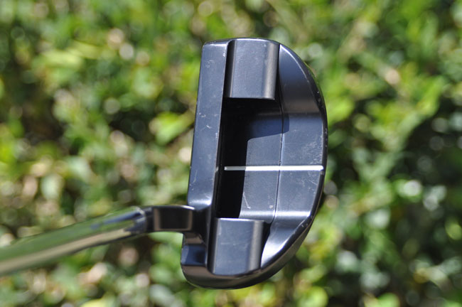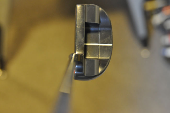 这是一个华高店的一位老客户在美国定制的Scotty Cameron Fastback 1.5推杆。球杆全长33.5寸,总重550.45克。Fastback 1.5和Fastback 1的差别是,它是有脖子的(有脖子有气节!)。Fastback 1是基本没有杆颈直接就接到杆身的。它与其他的Scotty推杆一样,由303不锈钢研磨而成,杆面后移是四分之三个杆身,对于广大不喜欢条形推杆又受不了大头杆头的巨型的选手来说,这么一颗小巧又漂亮的杆头是最理想的。也正是因为如此,你也能看到很多很多的职业选手用着半圆形的杆头。半圆形的杆头既能给你一个舒服的视觉效果(不像条形那么楞),又能有比较好的瞄准线长度,又不会太多复杂的线条来分散注意力,因此这种推杆上手容易,而且稳定性比较高不会一天一个样。