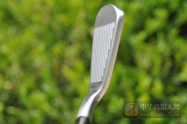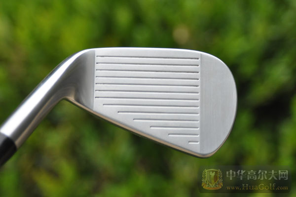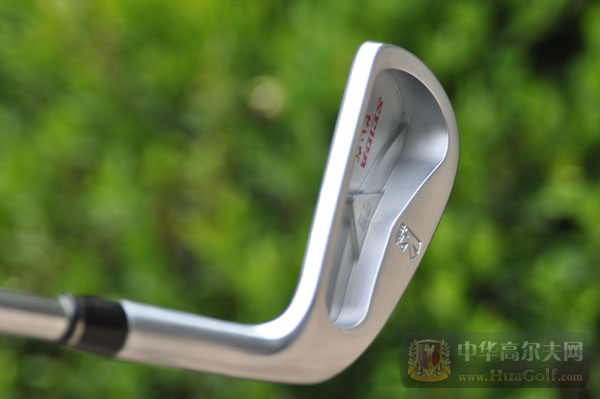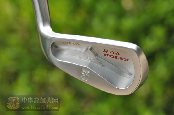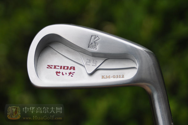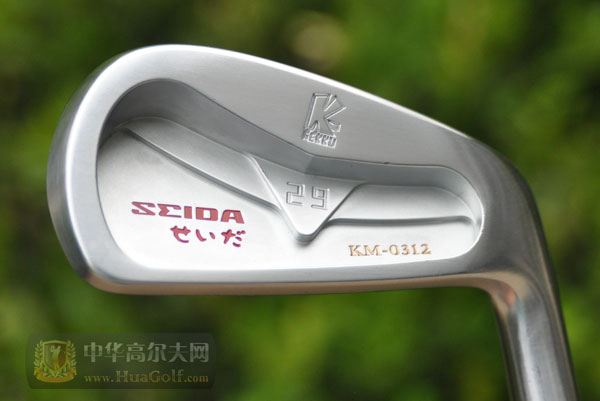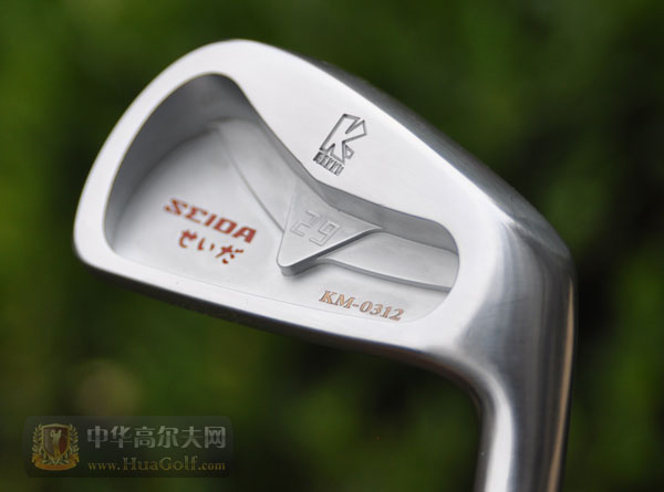 轻击区KM-0312铁杆是由S25C锻造,CNC加工而成。外形看上去这款KM-0312给人的最大感觉就是:精细。杆头是比较不传统的CB类型,在甜蜜点后面有三层阶梯式的加厚,重心会比较偏低,但是在击球点正后方有一块凸起的三角形,上面标有改支铁杆的出厂角度。6铁是29,7铁是33,P杆(他们叫E杆)是46。轻击区的大部分铁杆设计也都是面向中低差点,因此杆头外观看起来非常小巧紧凑,很小的杆面后移,拿着很有“自己很厉害”的感觉。这款杆打起来手感绝佳,控制能力很强,个人认为不亚于任何一款高端S25C的锻造铁杆例如Miura的CB。