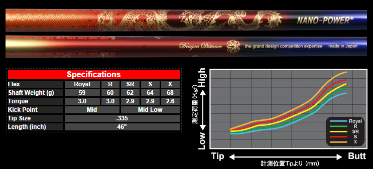 这款杆身是采用的超轻超低扭矩材料制成,具有柔软和高弹性的特点。即使是身体力量不够的选手通过这款杆身也能达到超远的距离!日本的大师Aka先生在碳素杆身设计领域已经有几十年的经验,使用了高吨数/高强度碳布来制作这款杆身。这些碳素通常用在导弹弹头和超级跑车上,但是要用这样的材料来制作杆身是非常困难的,因为越高弹性的越脆弱。但使用Nanopower特有的纳米技术,他们可以加固这样的材料来使其能用在高尔夫杆身上。