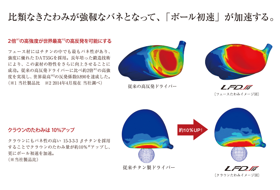 由于超标的杆头杆面较薄,因此推荐45m/s的挥杆速度或102mph的挥杆速度以下的选手使用,如果超过这个速度的建议使用LFD蓝色版本。