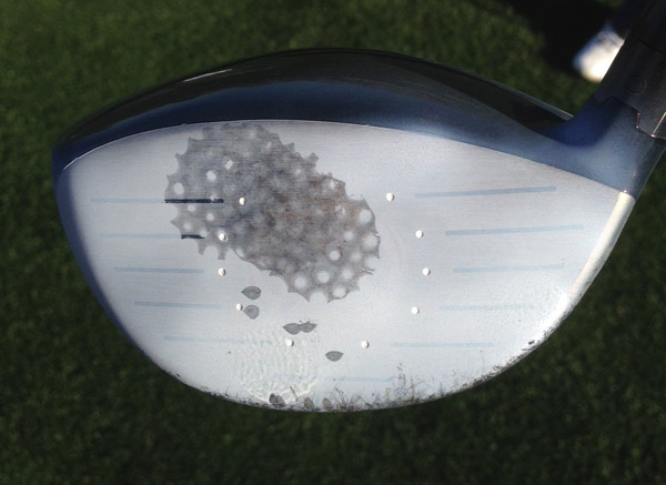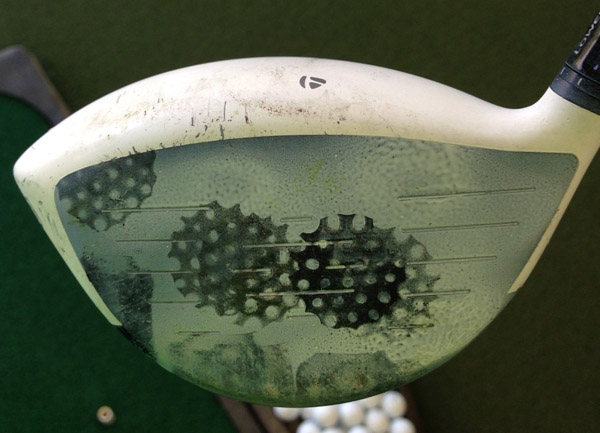 在杆面的中心击球是对距离最影响的一个因素之一。以下是不同差点打出的一号木杆头甜蜜点演示图。