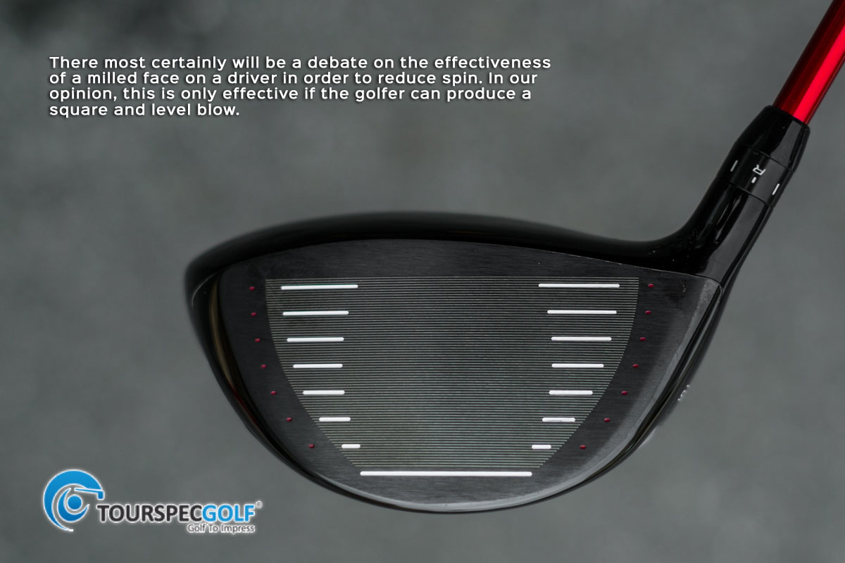 而这款普利司通的杆面则能大大改善这个情况。它的杆面有激光镭射的纹路,来增加一号木的咬球性能,加大击球的挤压效果。你会认为这样会增加倒旋吧?实际上根据机器人测试,这样的杆面反而能减少200-300的倒旋。