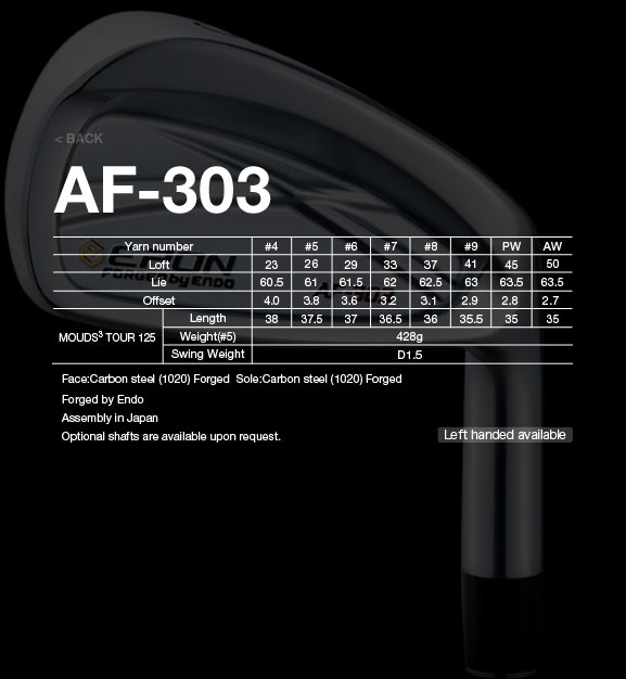 杆头是使用1020不锈钢锻造而成,Epon的锻造技术自然不用说,那绝对是世界顶尖水平的锻造。之前的302系列一直都很受中低差点选手的喜好,既有良好的操控性,又有不错的容错性,加上世界顶级锻造厂保证的优良手感,但对于中高差点选手来说302要稍偏难打,毕竟是比较接近CB的款式。但是今年的303显然要更加加强了容错性,这样可能有更多的中高差点选手能入手来尝试一下。