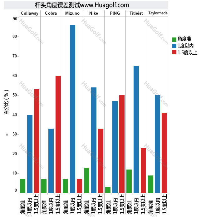 • ● Mizuno的杆头角度比较准,正负1度的情况占到93%。