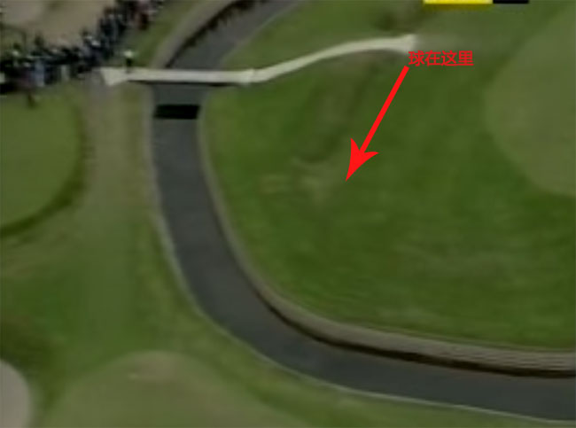 第二杆一般人都会选择缓攻一杆将球放到球道上,但是这位法国选手选择直攻,铁杆偏掉,落在膝盖高的长草中,从这里开始他就遇到了灾难。