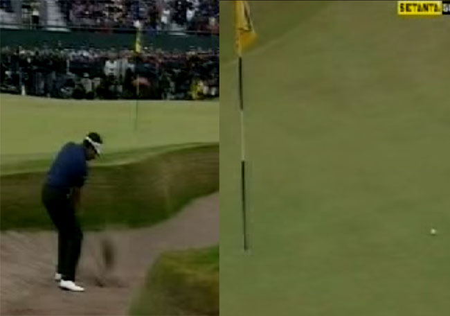 他的同组球员也在沙坑,很幸运地将球切进,这时Jean只有切进才能保证赢得比赛。他切到了旗杆旁边6尺内,这时只有推进才能进入加时赛。