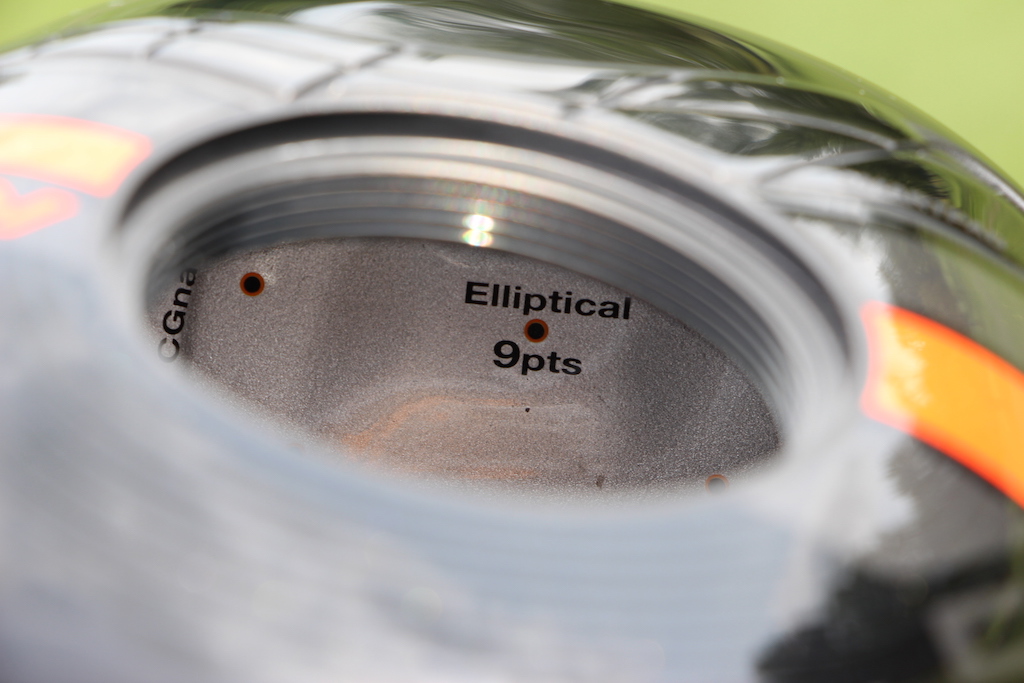杆头其他部分采用Ti-811钛金属制作,比普通的6-4钛合金要更轻,由于重量和强度不同,Cobra重新设计了它们的E9杆面技术,改变了杆面不同位置的厚度,让非甜蜜点击球速度变高。在你取下杆头底部的太空舱门以后你能看到杆面有不同标注的点。