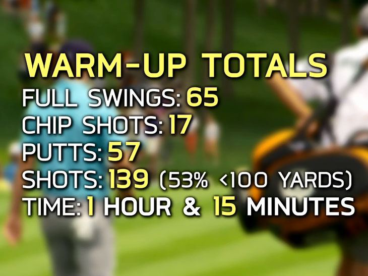 值得重视的几个点:大部分时间都在用于练习短杆尤其是推杆,铁杆跳着号练练就行,长杆热身完毕,还是回到推杆。职业球手都非常清楚,别的杆再怎么好,最后还是要比推杆。
