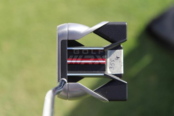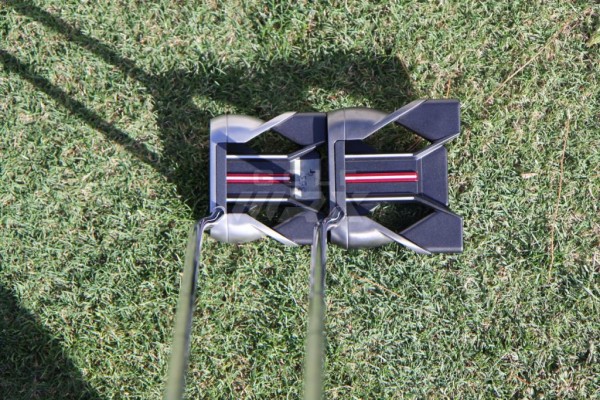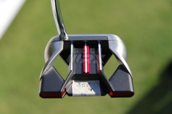 蜘蛛OS和蜘蛛OS反平衡两款都有研磨嵌入式杆面,顶部N条瞄准线,经典的Taylormade蜘蛛杆头造型,从图片上看蜘蛛OS反平衡要稍大一点,从杆头标签上能看出来它有400克重。而普通版的蜘蛛OS则是标准的355克,稍小一点的杆头。