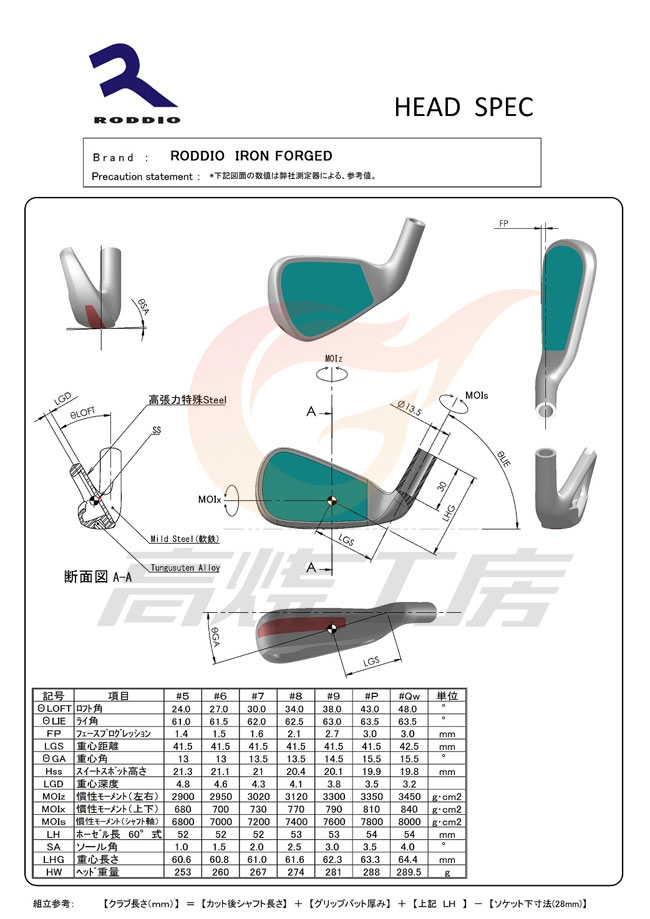 【铁杆】Roddio forged锻造凹背铁杆详 细数据表