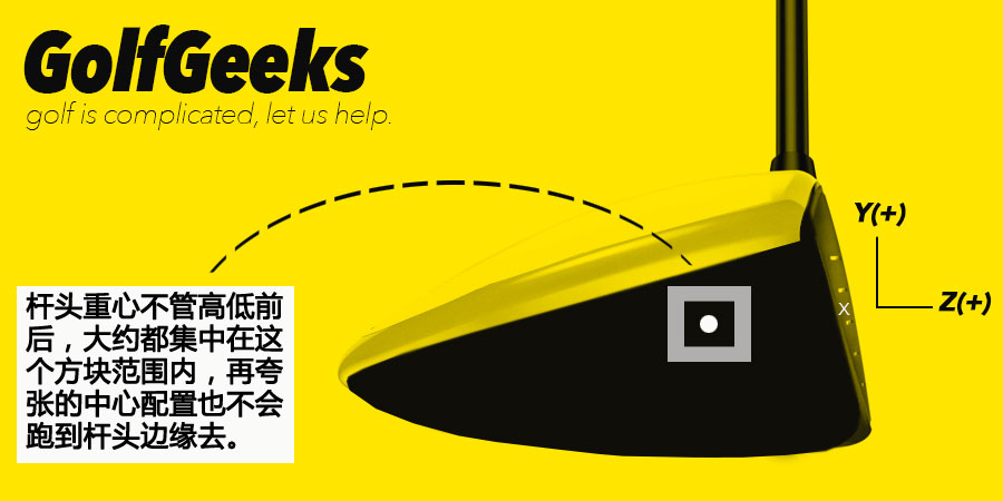 虽然重心的上下左右范围只有这么小一个方块,但是你会发现在这个小方块内的重心移动对你的球有巨大的影响。首先一根G30的杆头明显和一根Callaway BB的打感和球路差得鬼哭神嚎,就算你用一根可调节前后重心的杆头,调到前面和调到后面也会有很大的差别。