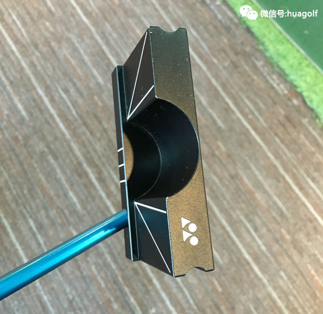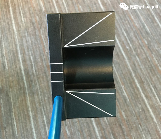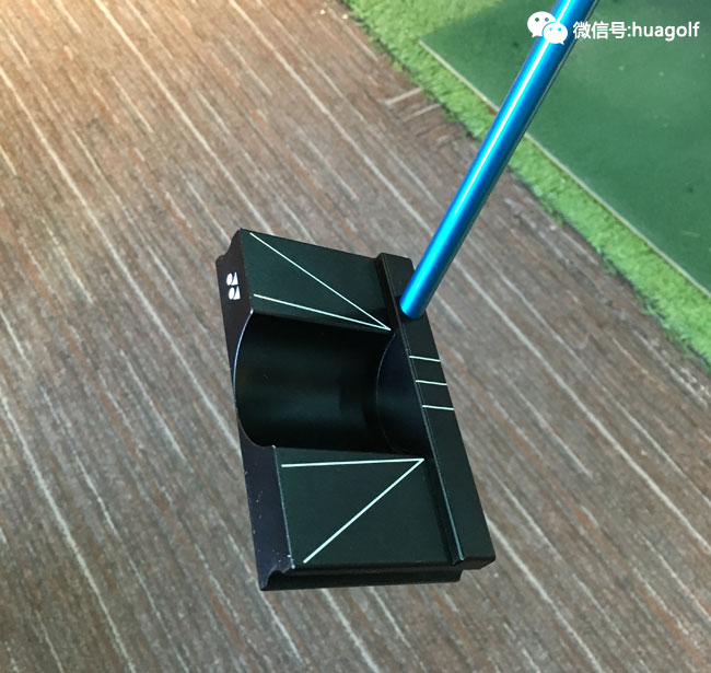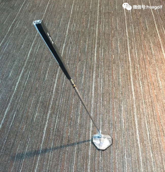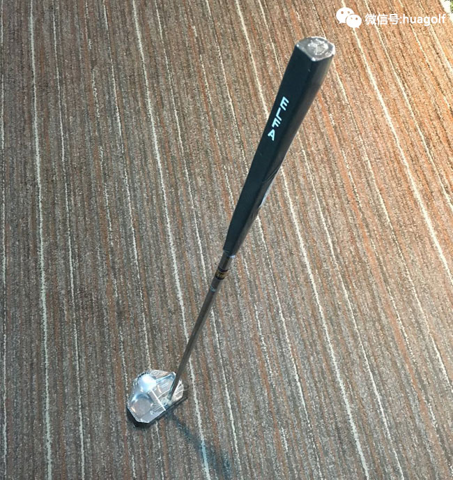 这支推杆我们已经卖了几年了,是日本出的一支诡异玩意,它的杆头奇大,上面有2-3个洞(分不同款式),方便捡球,一按球就起来。然而最奇葩的,是这支杆的瞄准方式,它可以自己立在地上!这支杆的瞄准非常搞笑,你可以瞄好球,将杆头大致摆在球后面,然后。。。。。。溜达到球后面去摆你的推杆!摆好了还能站到后面去看看杆头方向正不正!这样下来你就可以完全去掉瞄准不正的问题,再也不需要瞄好了再去让球童看看”我瞄得正不正?”这时你走上去轻轻地拿起杆来轻松摆肩,就可以保证击球的方向性。
