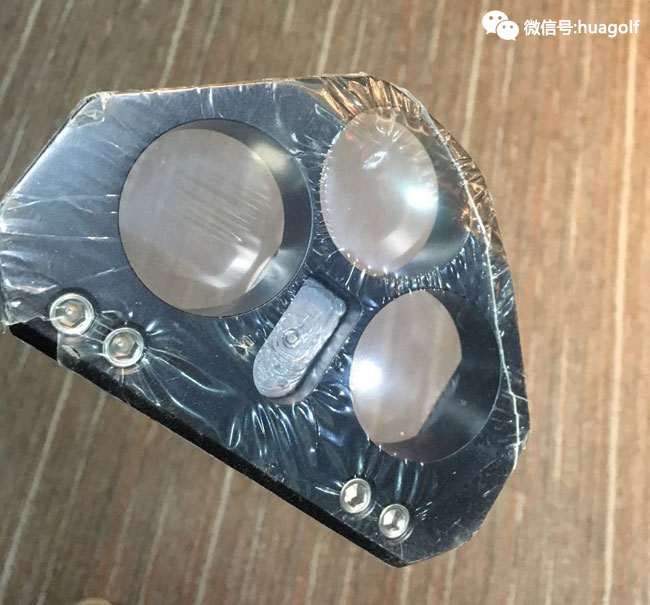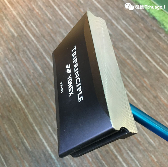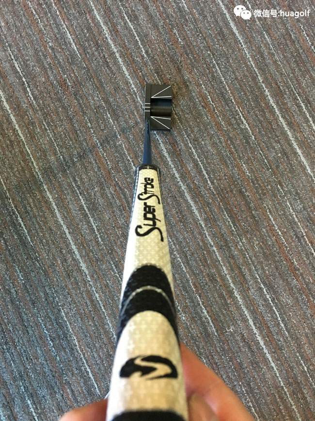 老白现役推杆,来自Yonex,乍看上去就像一块板砖一样,方头方脑,你看着挺怪吧,这支杆其实在球友之间已经有些名气了,被称为”一码神推”,意思是甭管多远都能推到一码内,一码内都能推进。据老白亲身体验,多远都能推到一码肯定是有吹牛逼的成分的,然而一码内都能推进基本上没问题的,确实这个头比一般的头在短推上要更有效,更稳,在关键球上也更有信心。另外他的这支用的原装碳素杆身,和SuperStroke XL加长后部加重握把。