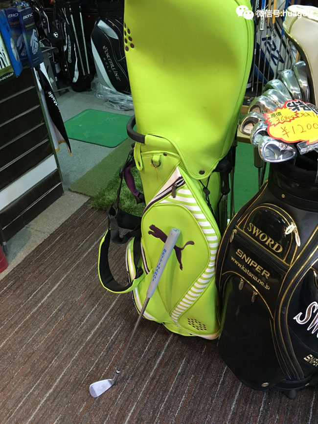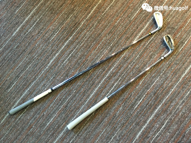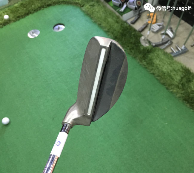 球龄大一点的朋友都认识这玩意,但是新选手往往就不知道这是个啥玩意。这,是一支切推杆。它的功能就是果岭边切推,很适合打切滚,长度短,方便操控。前几年曾经流行了一阵,后来大家觉得为了这个事专门放一支杆占用14杆的额度有点没必要,因此也就没有再流行。老白作为一个勇于尝鲜的球手当然用整了一支来使,使用时间不长,但直到现在我身边也还有球友在使用切推杆。