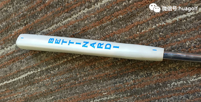 Titleist VG3+Bettinardi推杆握把做出的8号超短铁杆。这支8号铁看起来绝对搞笑,它不是短,它是超级短。假如你不知道27寸什么概念?喏,一般推杆式34寸的。它比一般推杆还短差不多20厘米。基本上看上去这就是一支只有握把和杆头的杆。它有啥用?据老白说,有两大用途。第一,在果岭边切球,对于切切滚的选手,极其方便,几乎相当于拿手扒拉球出去就完事了,保证一切一推。第二,困难球位救球,例如灌木丛中,不好上杆的地方,钻进去,拿这短小精悍的神器,轻松将球打出。