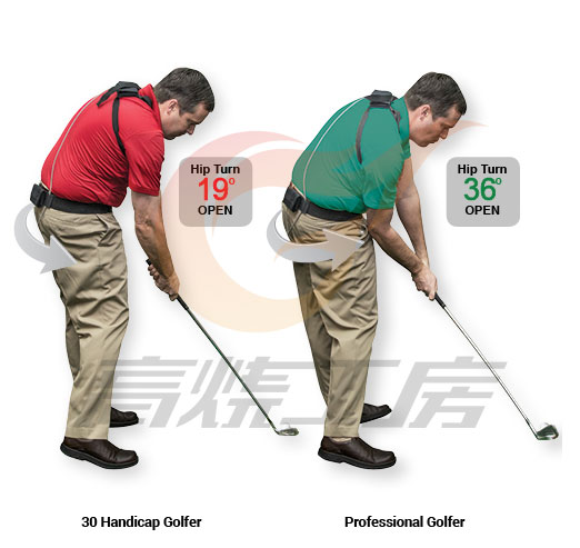 击球瞬间,业余平均胯部打开角度19度,职业胯部打开角度36度!