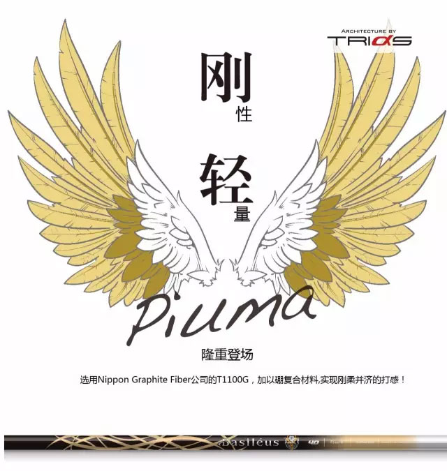 王者之剑的杆身素材也一直在更新和改进,这支新款的PIUMA是刚刚推出,第一次使用了Nippon Graphite的T1100G碳布,并且使用硼元素来增加杆身的弹性。