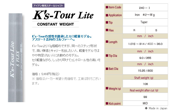 KBS的重量计算是以裁完之后来计算的,R的重量裁完是105。因此在这个范围内严格地说C-Taper 95其实是100克以上杆身。因此有趣的是C-Taper 95会比N.S.Pro的Modus3 105要沉。但是,C-Taper 95是一款不错的杆身,全直管,高弹道,中倒旋,稳定性高,适合喜欢KBS打感又觉得Tour 90稍轻的选手。