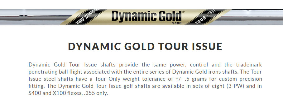 到了这个级别级别上都属于杆身中的猛兽级别了。这个时候不同的选手可能更多的根据自己的感觉来选择。喜欢打感软一点的可能更多选择Modus3 120,最畅销常用的应该是Dynamic Gold,所谓Tour Issue表示是职业级别的版本的Dynamic Gold,比普通的会要更好。喜欢打感直接,挑战自我水平的可能会选择Project X,力大无穷的可能会选择KBS C-Taper或者Tour。