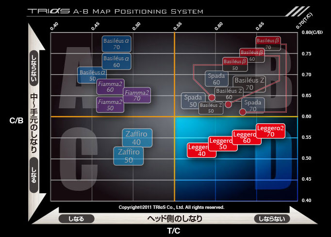 Leggero的特色是手元端偏软,杆头端偏硬。(T/C比较硬,C/B比较软)这是典型的【距离型】杆身设计。如果留意参数你会发现大部分距离型杆身都是如此设计。为何?因为强力挥杆型选手具备两个特色,一个是释放相对来说较晚,一个是手腕力量大;并且对他们来说,稳定性不够。