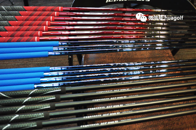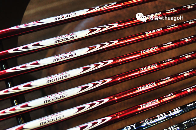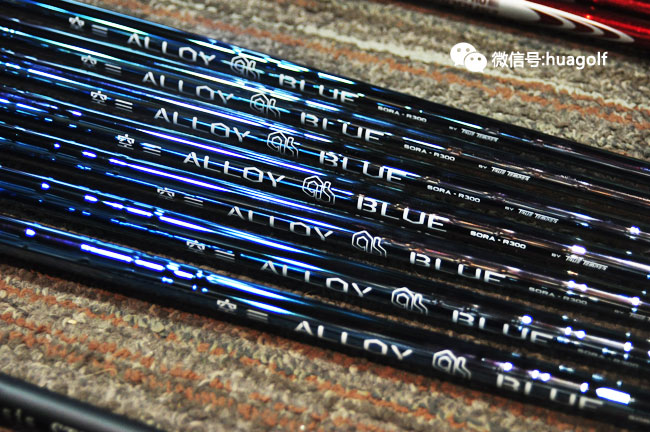 蓝色是True Temper的SOLA蓝色杆身。重量在85克左右,属于轻松,超高易打性的钢杆身。在所有的True Temper杆身里面SOLA属于最易打,柔和手感,许多力量稍差的业余选手,或者女子职业选手都有使用。