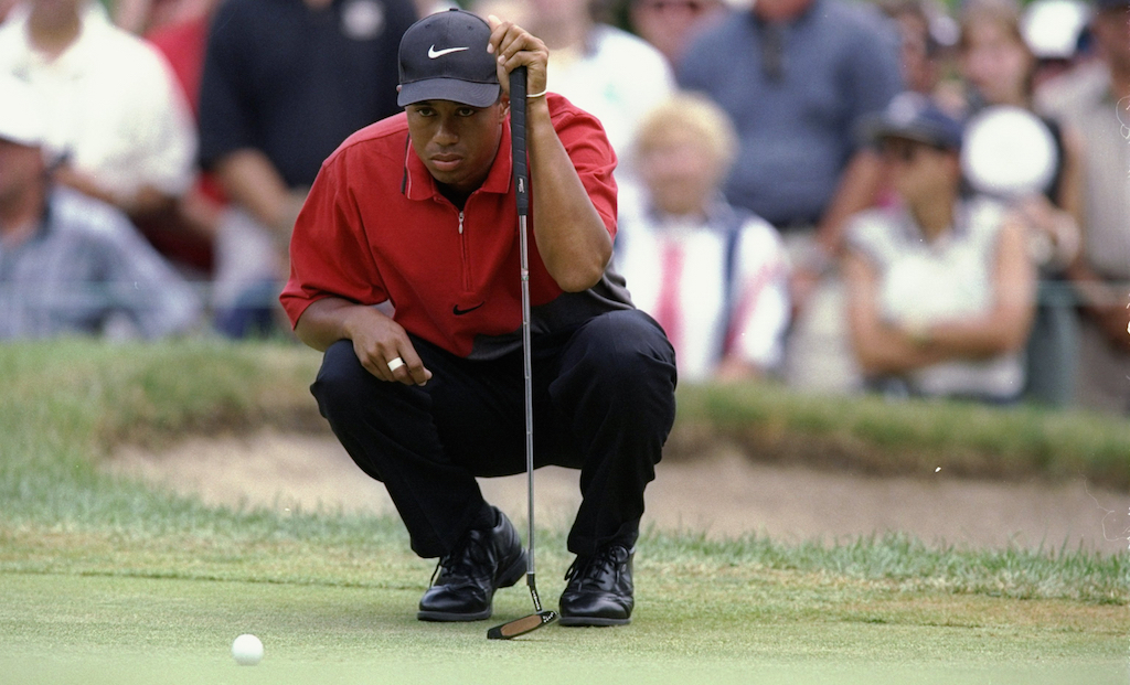 在那之前,老虎用得是TEi3推杆,也是Scotty Cameron制作,后面全部是点儿的那款,在1997年大师赛的时候使用。